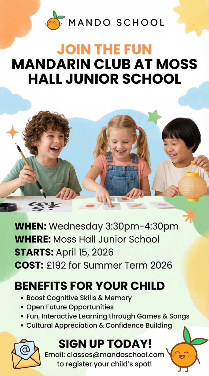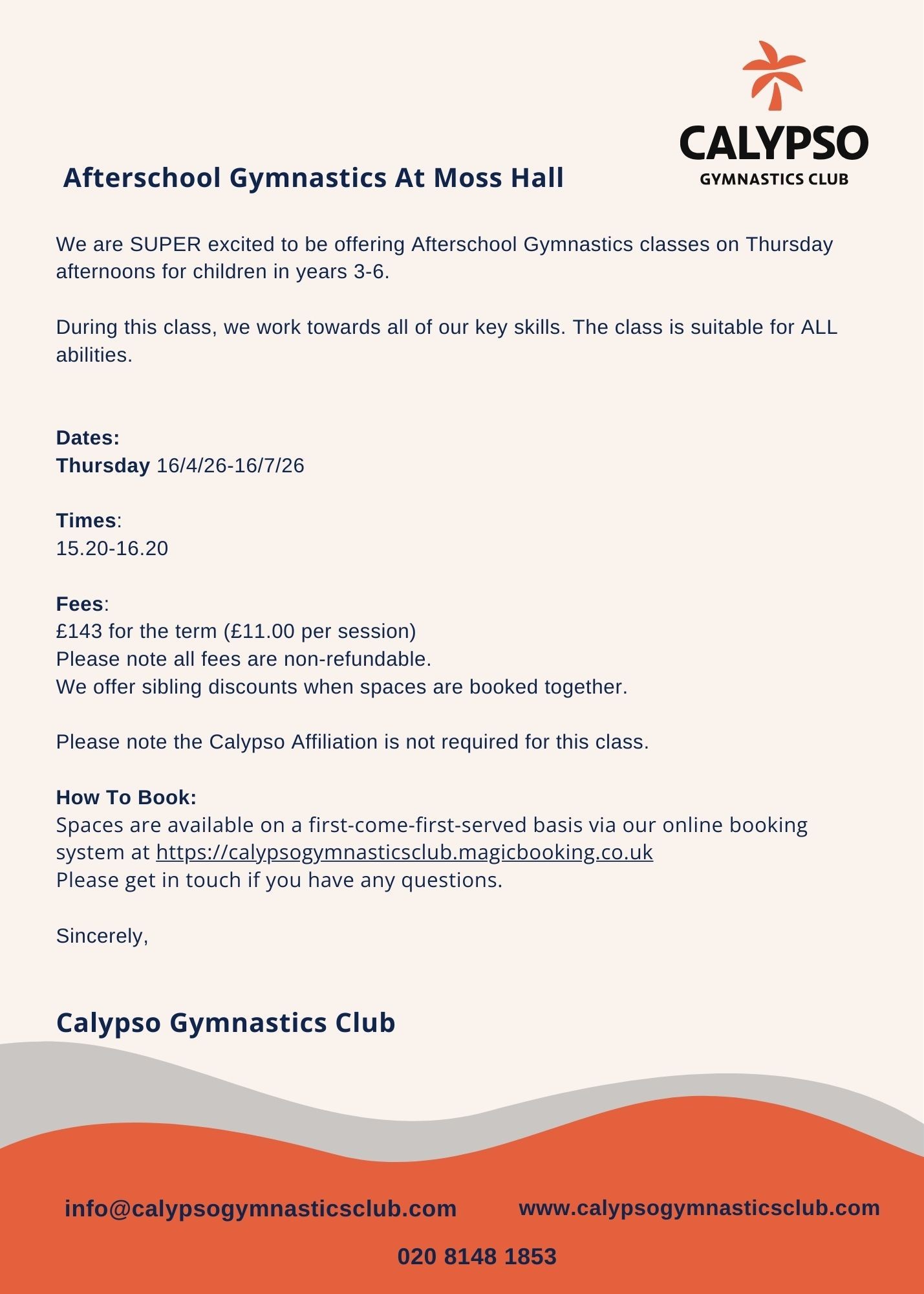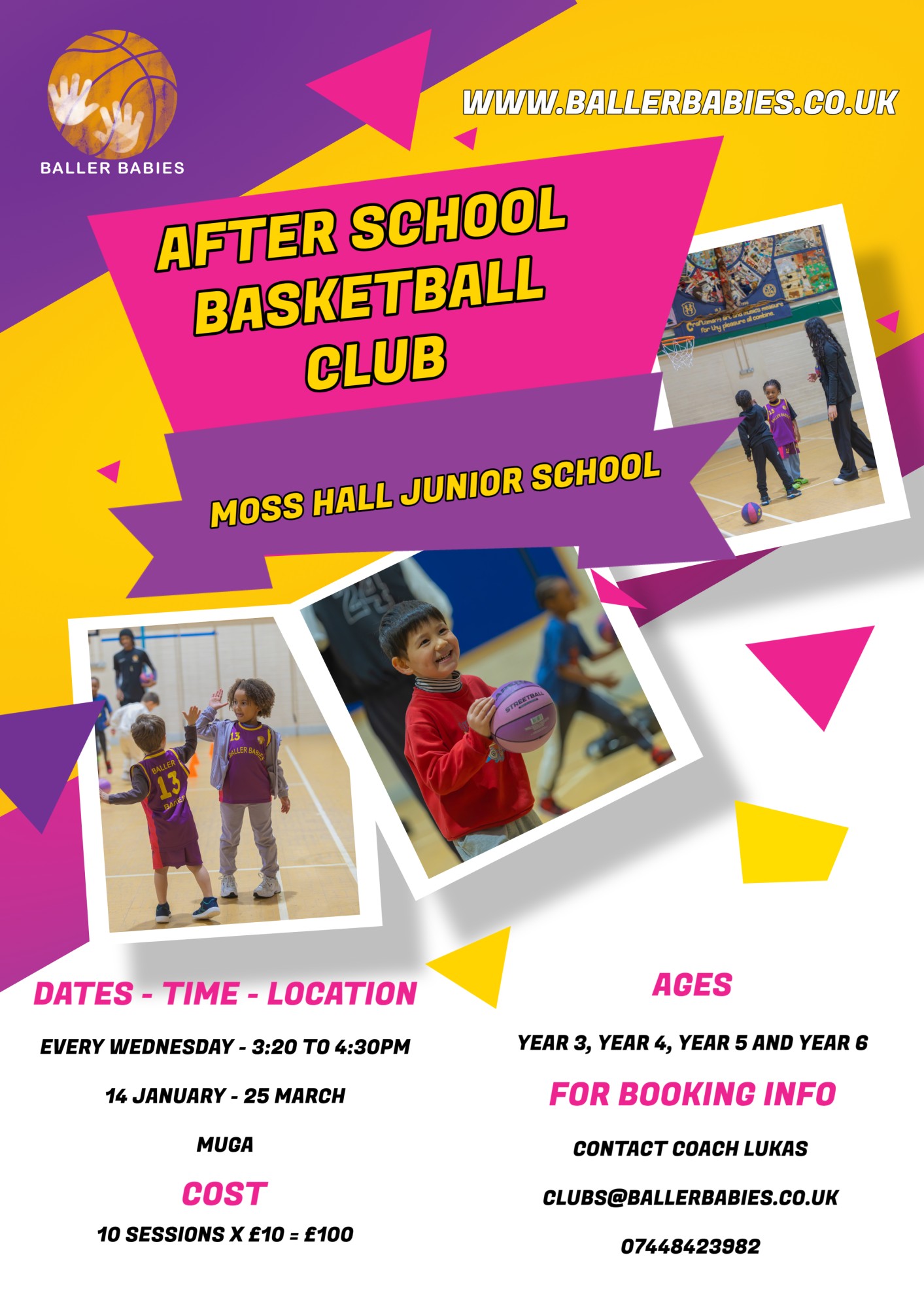 For Junior School BEFORE school clubs (Y5/6 Netball, Y5/6 Girls football and Cross country) run by school staff, please email the school office at: office@mosshalljnr.barnetmail.net and state your child's name, class and the club you are interested in, so your child can be added to the club list.